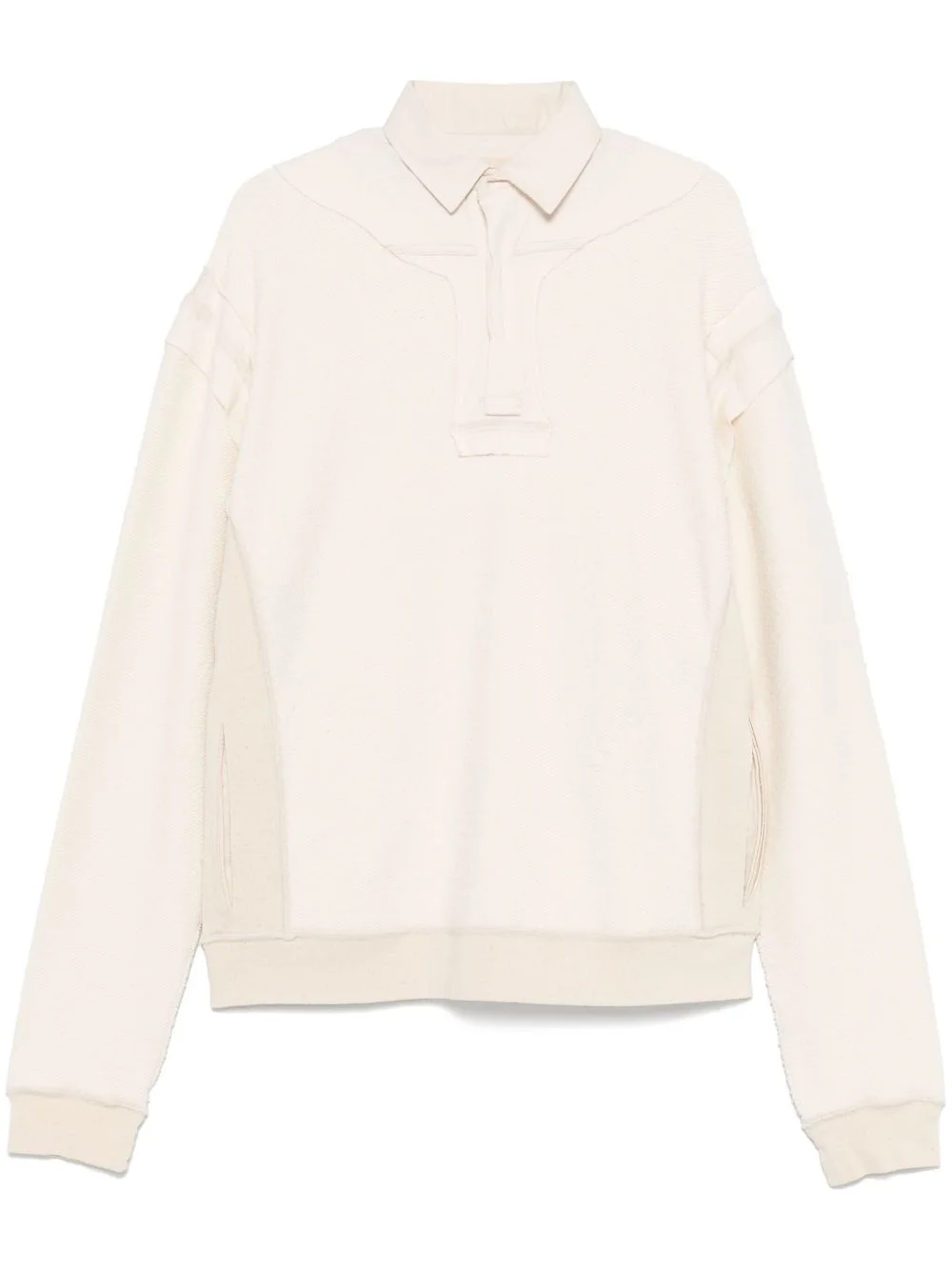 Decortique polo shirt Highlights - Ecru - Short front button fastening - Two side slit pockets - Ribbed cuffs and hem - Patch detail Made in Italy Composition Outer: Cotton 100% Lining: Cotton 100% SIZE & FIT Model measurements Height 6 ft 1 in(1.86 m) Bust/Chest 37.4 in(95 cm) Hips 36.22 in(92 cm) Waist 29.52 in(75 cm) FittingInformation Designed for a loose fit, this polo shirt offers additional room throughout The ribbed hem offers a close, comfortable fit Made from a midweight non-stretch fabric, this piece offers minimal elasticity when worn