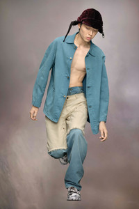 The caban jacket is made in denim with discolouration for a slightly distressed look, enhanced by the worn edges at the cuffs and on the edge of the large patch pockets. It features a classic collar and button fastenings, with snap button cuffs to slightly alter the silhouette. Maison Margiela's signature, the four stitches, appear at the back; the opposite of a label. Product Details Item ID S50AM0635M30024961 Primary Fabric: 100% Cotton Cotton caban Button closure Patch pockets Four stitches at the back Made in Italy Model is 188 cm tall and wears a size 46.