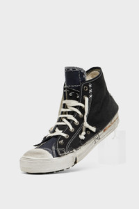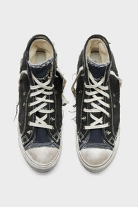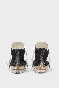 These Love to Death sneakers are crafted in layered canvas, detailed with raw edges, distressed soles, and visible seams. Treated for a worn effect, the design reworks a classic high-top silhouette with a sense of built-in history. Product Details Item ID S97WS0082P7454HB130 Upper: 100% Cotton Lining: 100% Cotton Inside: 100% Goat Leather Sole: 100% Rubber High-top sneakers in layered canvas with visible distressing Cut-away material and exposed seams Contrast tongue and topstitching Rubber toe caps with aged effect Lace-up closure Numeric signature label on the inner tongue