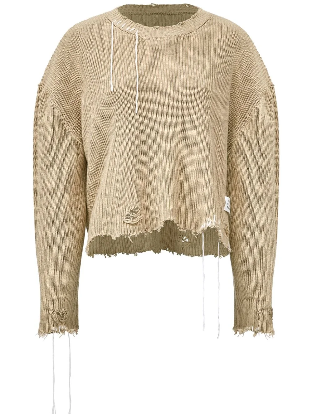 distressed knitted jumper Highlights - Beige - Cotton - Ribbed knit - Crew neck - Corded lace - Long sleeves - Logo patch to the side - Distressed finish Made in Italy Composition Cotton 100% Washing instructions Read Manufacturer Guidelines