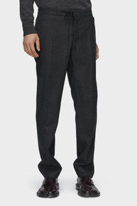 These trousers are tailored in virgin wool and finished with a drawstring waist. Sharp creases define the front, while welt pockets at the back keep the line precise. A subtle disruption of tailoring codes, where comfort becomes an intrinsic element of design. At the back, the Maison’s signature four stitches appear; the opposite of a label. Product Details Item ID S50KA0722S47782860M Primary fabric: 100% virgin wool Pocket lining: 100% cotton Wool flannel Full-length straight-leg Drawstring closure at the waist Four stitches at the back Made in Italy