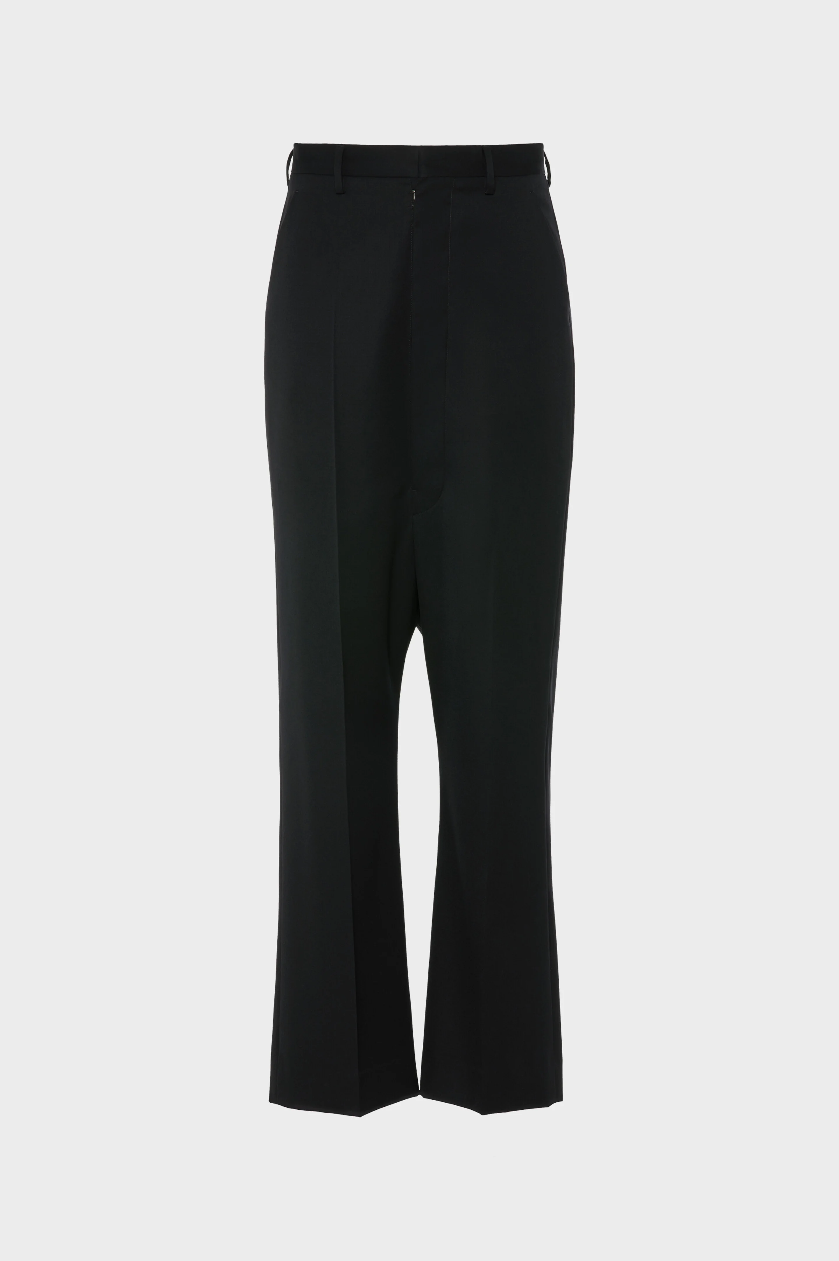 Virgin wool trousers cut with a dropped rise for a subtly reworked tailoring proportion. The straight leg falls cleanly from the hip, shaped only by a pressed crease and minimal construction. At the back, the Maison’s signature four stitches appear; the opposite of a label. Product Details Item ID S67KA0084M35910900 Primary fabric: 100% virgin wool Half lining: 100% viscose-rayon Pocket lining: 100% cotton Full-length wide-leg fit Zip and hook closure at the front Four stitches at the back Made in Italy