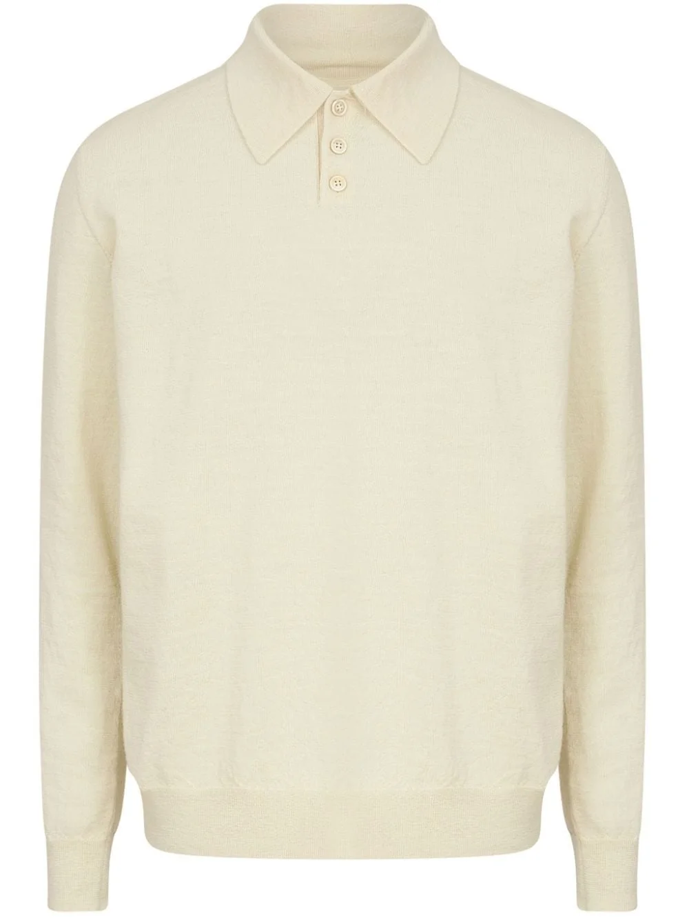 elbow-patch polo shirt Highlights - Citron pale yellow - Wool - Elbow patches - Short front button fastening - Polo collar - Long sleeves - Straight hem Imported Composition Wool 100% Washing instructions Read Manufacturer Guidelines