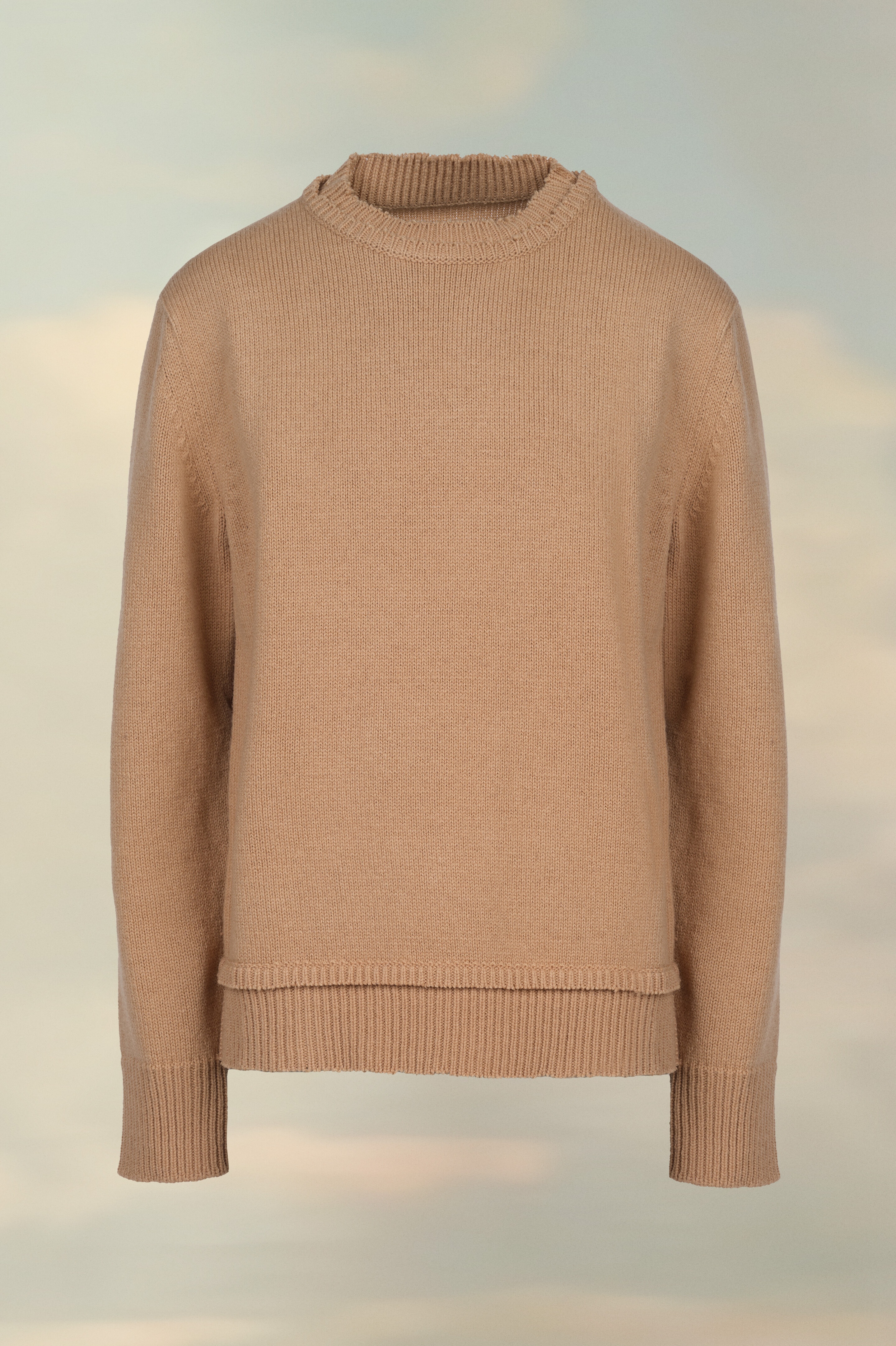 This crew-neck knit sweater with long sleeves and ribbed trims features tonal elbow patches. At the back, four white stitches show the hand of the Maison: the opposite of a label. Gauge 5. Product Details Item ID SI1GP0001S18064106F Composition: 46% Wool, 31% Linen, 23% Cotton Crew-neck Ribbed trims Suede elbow patches Décortiqué details Four stitches at the back Gauge 5 Made in Italy