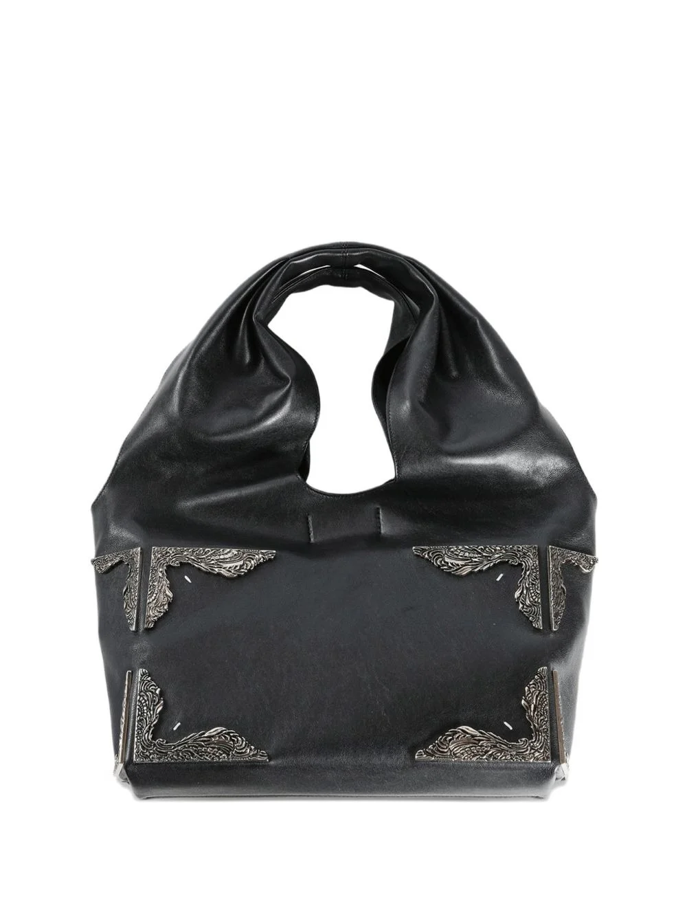 embellished leather tote bag Highlights - Black - Leather - Embellished corners - Top handle Made in Italy Composition Body: Ovine Leather (top grain) 100% Lining: Polyester 85%, Elastane 10%, Polyurethane 5%