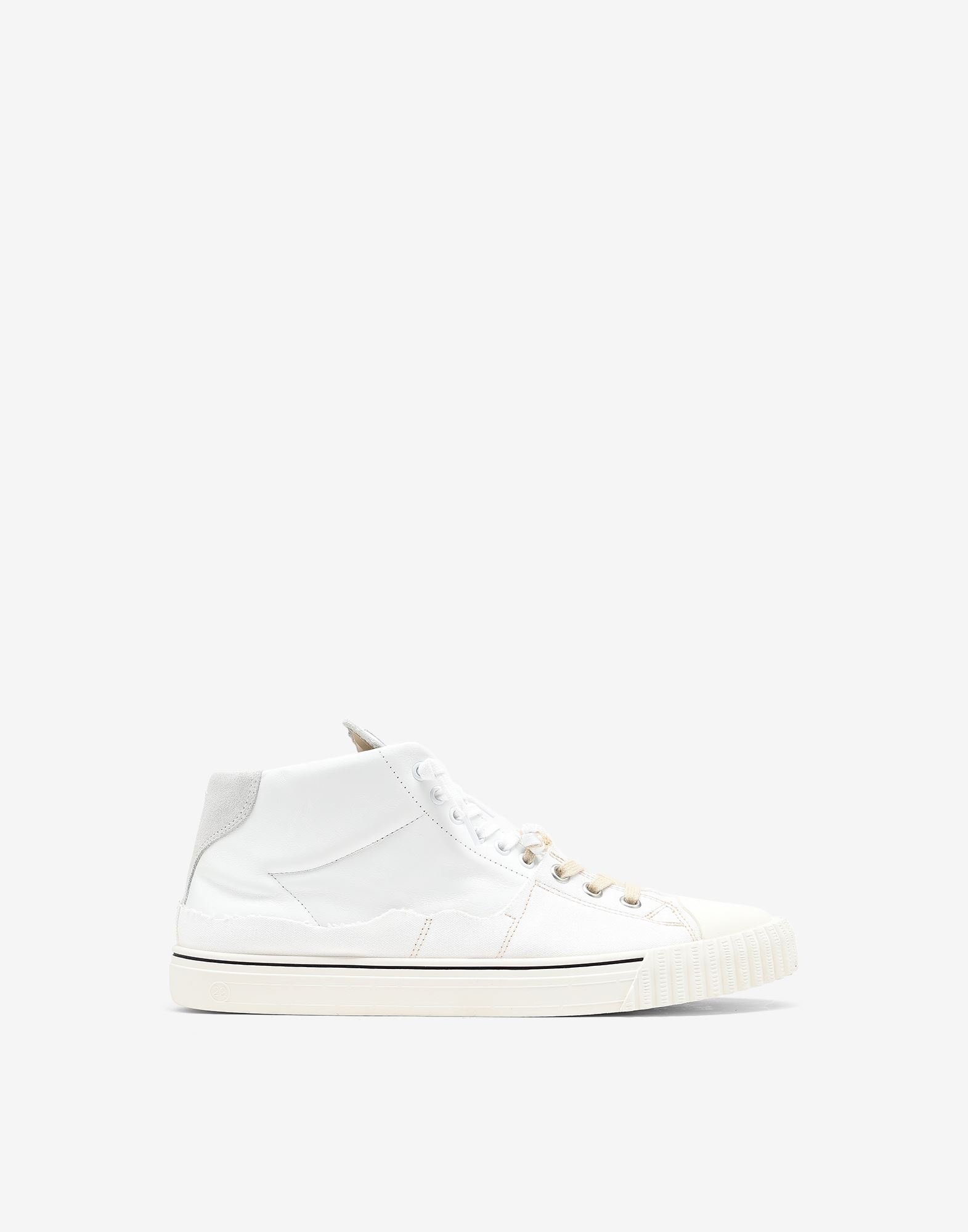 Evolution sneakers featuring the Maison's Spliced technique for contrast. Crafted from a mix of canvas, calfskin and suede, the pair is finished with rubber soles and multi-laces. The back is marked with the iconic straight white stitch. Made in Italy. Item details 100% Bovine leather, Cotton Canvas Leather Solid color Logo Round toeline Leather lining Rubber sole Laces
