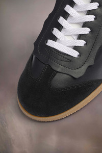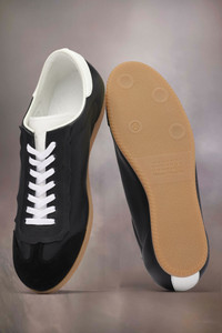In calfskin and suede, the Featherlight sneaker has a flat sole and contrast tongue and heel. The back features a single white stitch showing the hand of Maison Margiela. Product Details Item ID S57WS0465P4308T8013 Upper: 100% calf leather Lining: 100% polyester Sole: 100% rubber Calf leather sneakers Lace-up Décortiqué lasered details Logo label on the tab White stitching at the back All-over logo insole Made in Italy A digital certificate provided by the Aura Blockchain Consortium guarantees the authenticity of this product. Discover more on auraluxuryblockchain.com/#about