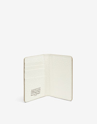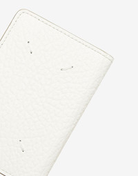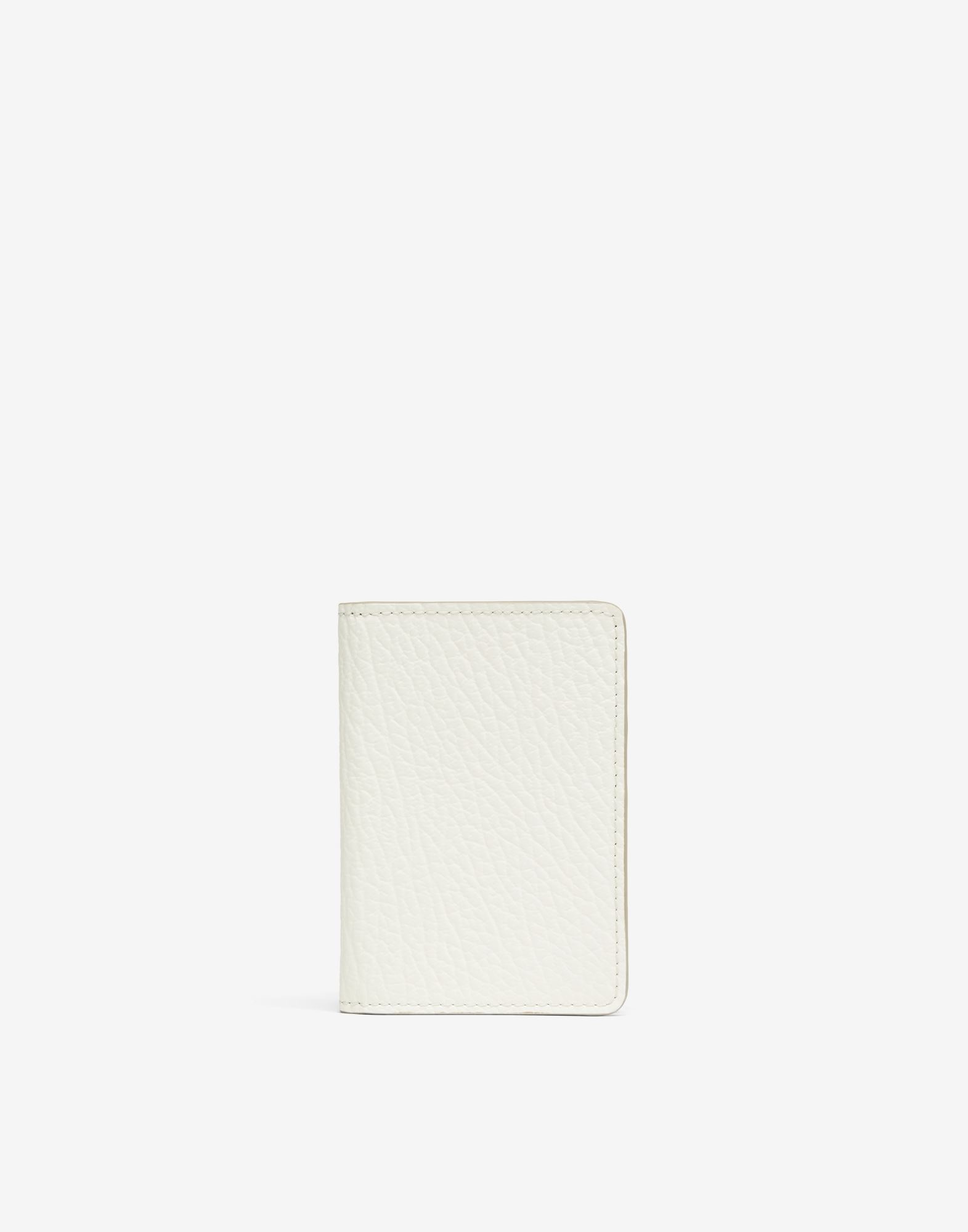 Fold card holder in embossed grained calfskin with seven card slots. The signature four-stiches moniker appears on the back while the Maison's numerical logo is featured inside. Made in Italy. Item details 100% Bovine leather Width: 2.9 inches Height: 4.1 inches Textured leather Card slots