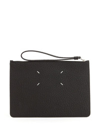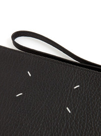 four-stitch leather cardholder Highlights - Black - Calf leather - Pebbled texture - Signature four-stitch logo - Top zip fastening - Single flat side handle - Main compartment Made in Italy Composition Calf Leather 100%