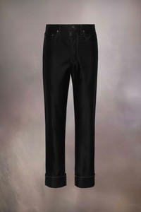 The trousers come in satin cotton with contrast stitch. They feature five pockets and the Margiela hook. Maison Margiela's signature, the Four stitches, appear at the back; the opposite of a label. Product Details Item ID S67LA0035M35096900 Composition: 100% cotton Pocket lining: 100% cotton Cotton satin 5-pocket trousers Regular waist Belt loops Straight leg Button closure Maison Margiela hook Four stitches at the back Made in Italy