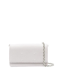 four-stitch wallet-on-chain Highlights - Off-white/lilac purple - Calf leather - Grained texture - Signature four-stitch logo - Chain-link shoulder strap - Foldover top with magnetic fastening - Main compartment - Internal zip-fastening pocket - Internal card slots Made In Italy Composition Outer: Calf Leather 100% SIZE & FIT Model measurements Height 5 ft 11 in(1.8 m) Bust/Chest 34.25 in(87 cm) Hips 35.82 in(91 cm) Waist 24.8 in(63 cm) Measurement DEPTH 1.57 in(4 cm) HEIGHT 4.33 in(11 cm) STRAP 20.86 in(53 cm) WIDTH 7.48 in(19 cm)