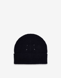 Fisherman-inspired beanie hat in compact English rib stitch with the Maison's four-stitches moniker at the front. Gauge 5. Made in Italy. Item details 75% Alpaca, 25% Polyamide Solid color Lightweight knit