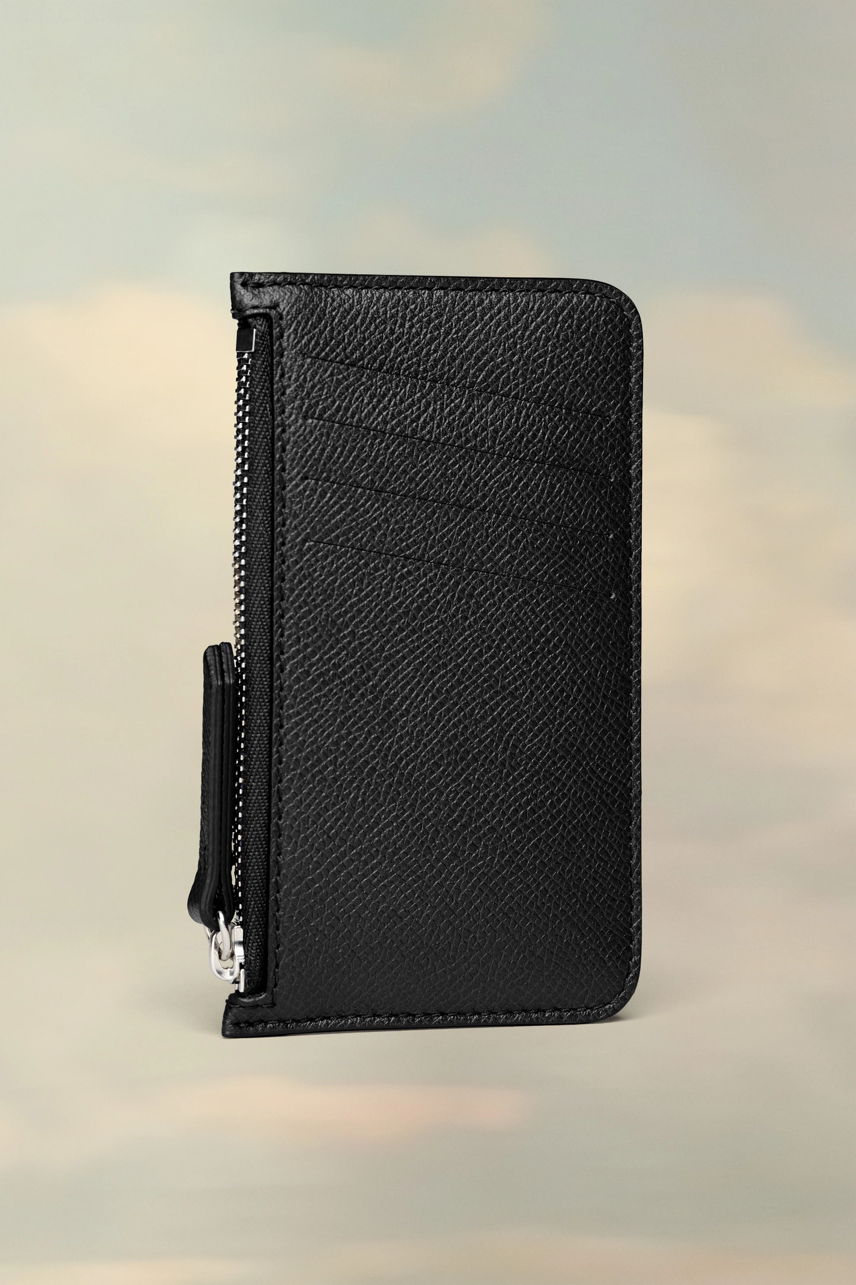 With four card holders on the side and a zipped main body, the cardholder is crafted from grainy leather. The logo appears inside. Maison Margiela's signature, the four stitches, appear on the back; the opposite of a label. Product Details Item ID SA1VX0008P4745T8013 Outer: Small grainy calf leather and smooth calf leather Inner: Calf leather Lining: Viscose Four stitches at the back Inside logo stamping Zip pocket Four card slots Clean with a specific leather cleaner product and a damp microfiber cloth Made in Italy 12 cm x 7 cm/4,5 in x 2,5 in (Length x Height)
