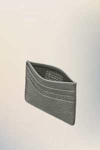 The cardholder comes in embossed grainy leather with five card slots and a middle section with the numeric logo inside. Maison Margiela's signature, the four stitches, appear on the back; the opposite of a label. Product Details Item ID SA1VX0006P4455T8127 Body: 100% Calf Leather Inside: 100% Calf Leather Lining: 100% Viscose Grainy leather card holder with angled slots Five card slots with a diagonal cut Central compartment Numeric signature to the interior Four stitches at the back. Made in Italy