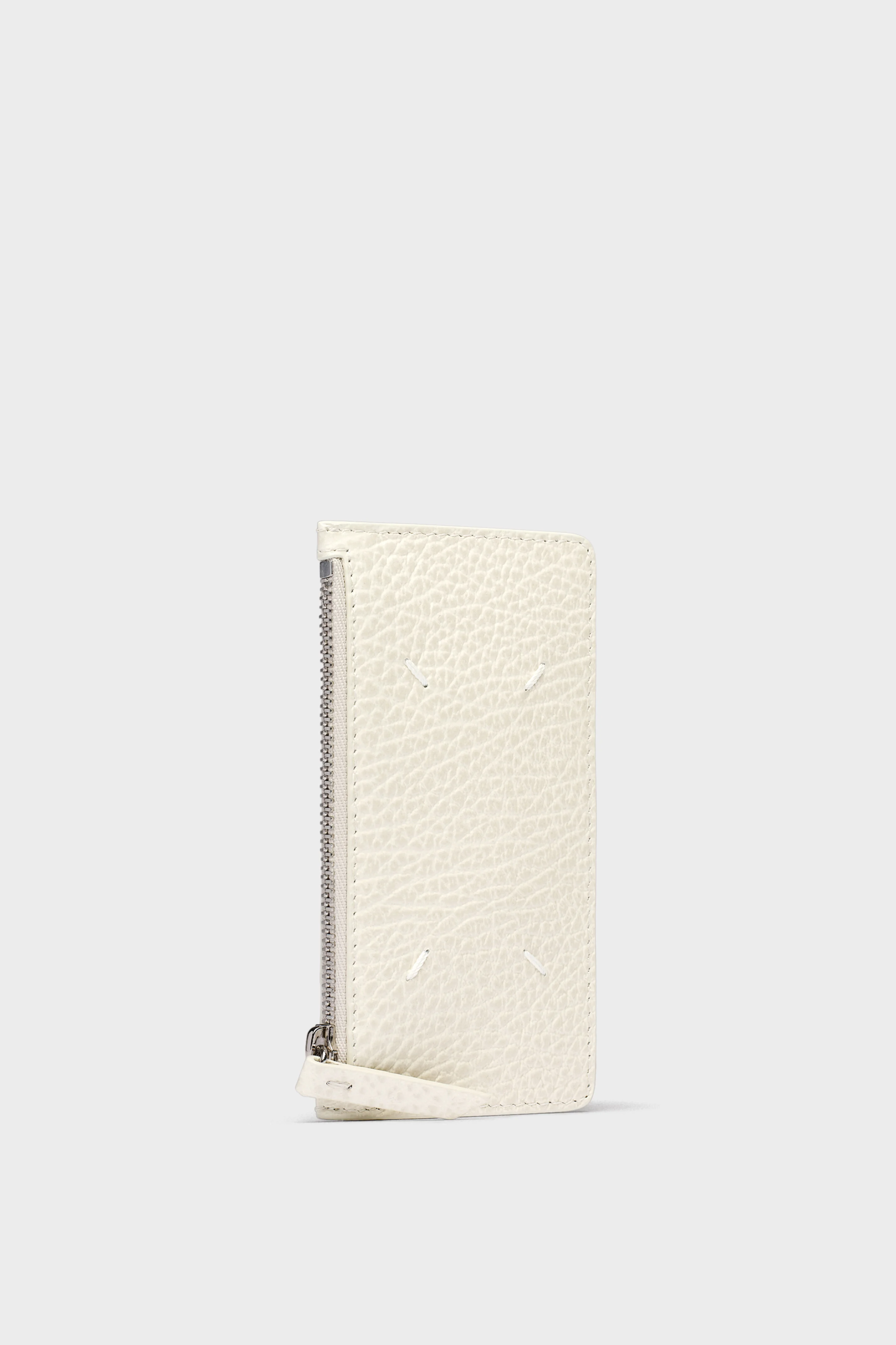 Crafted from embossed grainy leather, the cardholder wallet has a zipped section for coins and five card holders. The numeric logo appears inside. Maison Margiela's signature, the four stitches, appear at the back; the opposite of a label. Product Details Item ID S56UI0143P4455H9677 100% calf leather Embossed grainy leather Lining: 100% viscose Zip around closure Four stitches at the back Handle with care and store in provided dust bag. Clean with a mild leather cleanser without rubbing. Made in Italy