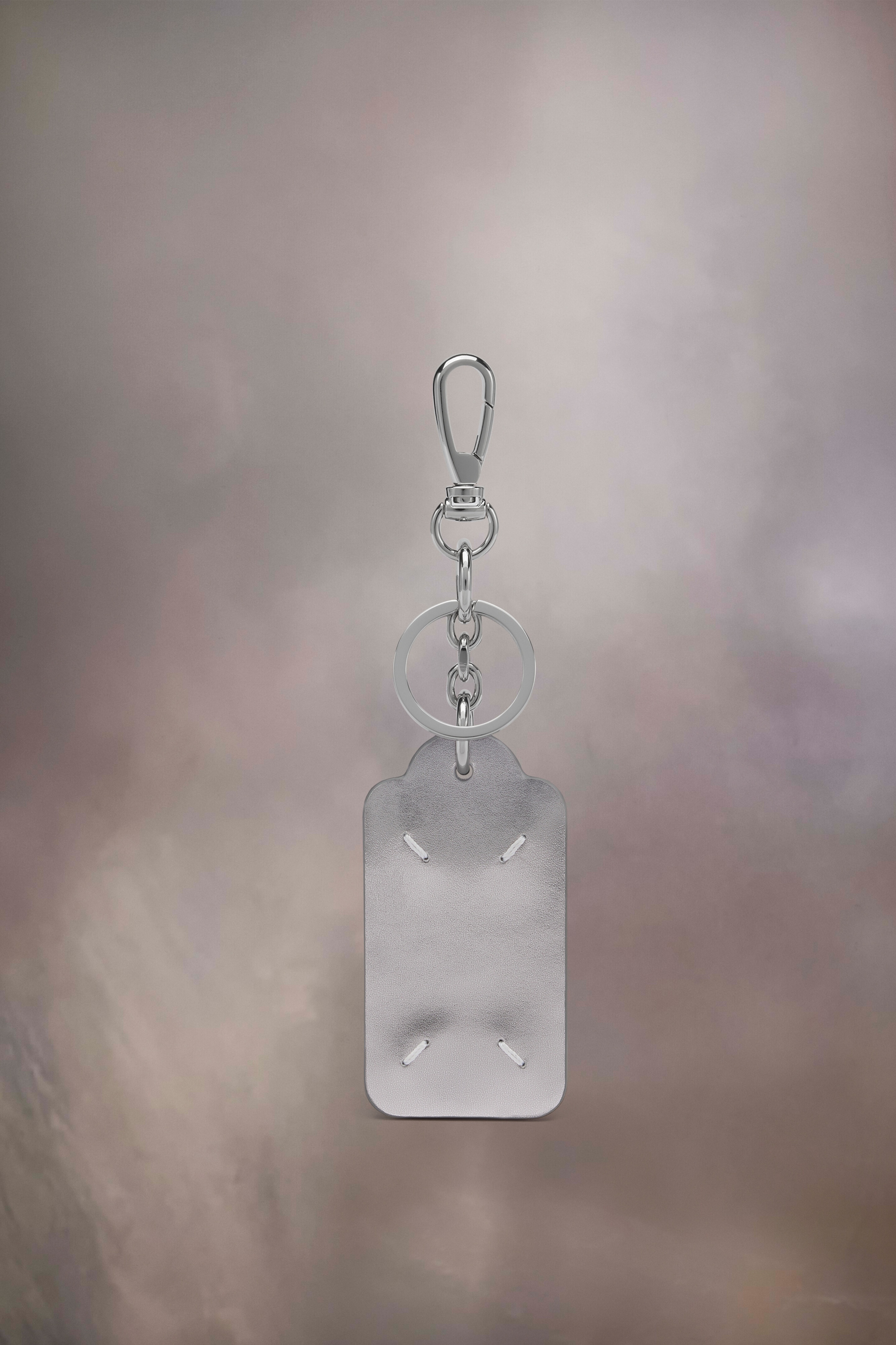 The key ring, complete with clip, presents a short chain with metallised leather tab. With the logo on one side, Maison Margiela's signature, the Four stitches, appear on the other side; the opposite of a label. Product Details Item ID SA1UA0005P7295H3809