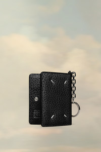 Crafted from embossed grainy leather, the cardholder has a keyring chain, snap button closure and multiple card holders. Maison Margiela's signature, the four stitches, appear at the back; the opposite of a label. Product Details Item ID S56UI0128P4455T8013 Outer: Grainy calf leather with soft touch Lining: Viscose Four stitchesat the back Snap button closure Inside logo stamping Six inside card slots Inside key chain Clean with a specific leather cleaner product and a humid microfiber cloth Made in Italy 8 cm x 10 cm/3 in x 4 in (Length x Height) Key chain length: 11 cm/4,3 in
