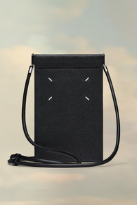 This phone holder has a secure snap button flap closure and is crafted from grainy leather, with an adjustable tonal strap that can be worn around the neck. Maison Margiela's signature, the four stitches, appear on the front; the opposite of a label. Product Details Item ID SA1VZ0002P4745T8013 Outer: Small grainy calf leather Inner: Calf leather Lining: Viscose Adjustable strap Leather lining Four stitches at the back Flat pockets Clean with a specific leather cleaner product and a damp microfiber cloth Made in Italy 12 cm x 18 cm/4,7 in x 7 in (Length x Height)