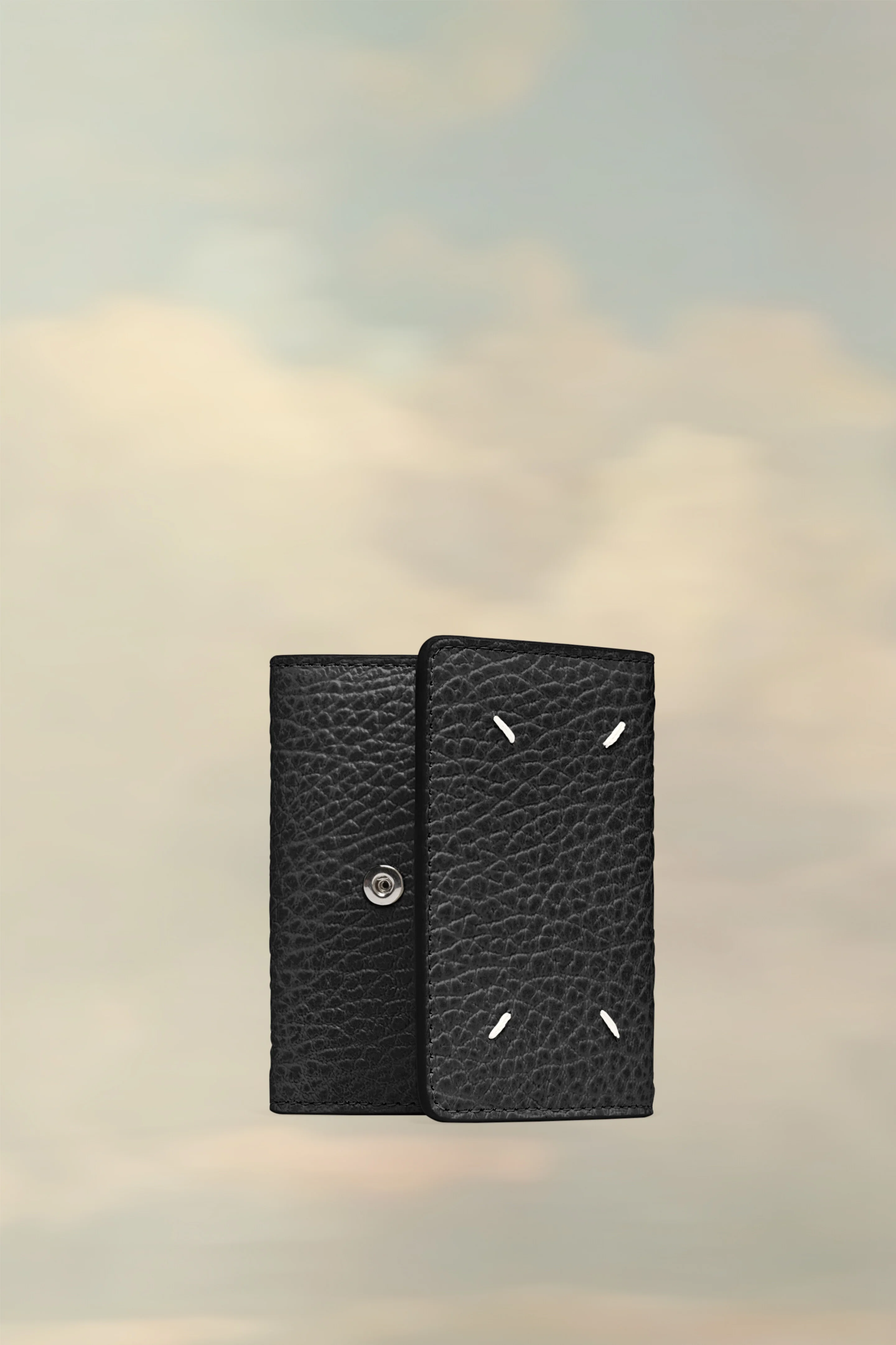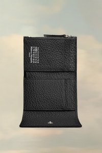 In embossed grainy leather, the wallet features the numeric logo inside with four card holders and a zipped section. Maison Margiela's signature, the four stitches, appear on the back; the opposite of a label. Product Details Item ID SA3UI0010P4455T8013 Outer: Grainy calf leather with soft touch Lining: Viscose Four stitchesat the front Snap button closure Inside logo stamping Inside zip pocket Inside flat pocket Six inside card slots Clean with a specific leather cleaner product and a humid microfiber cloth Made in Italy 10,5 cm x 8 cm/4 in x 3 in (Length x Height)