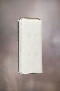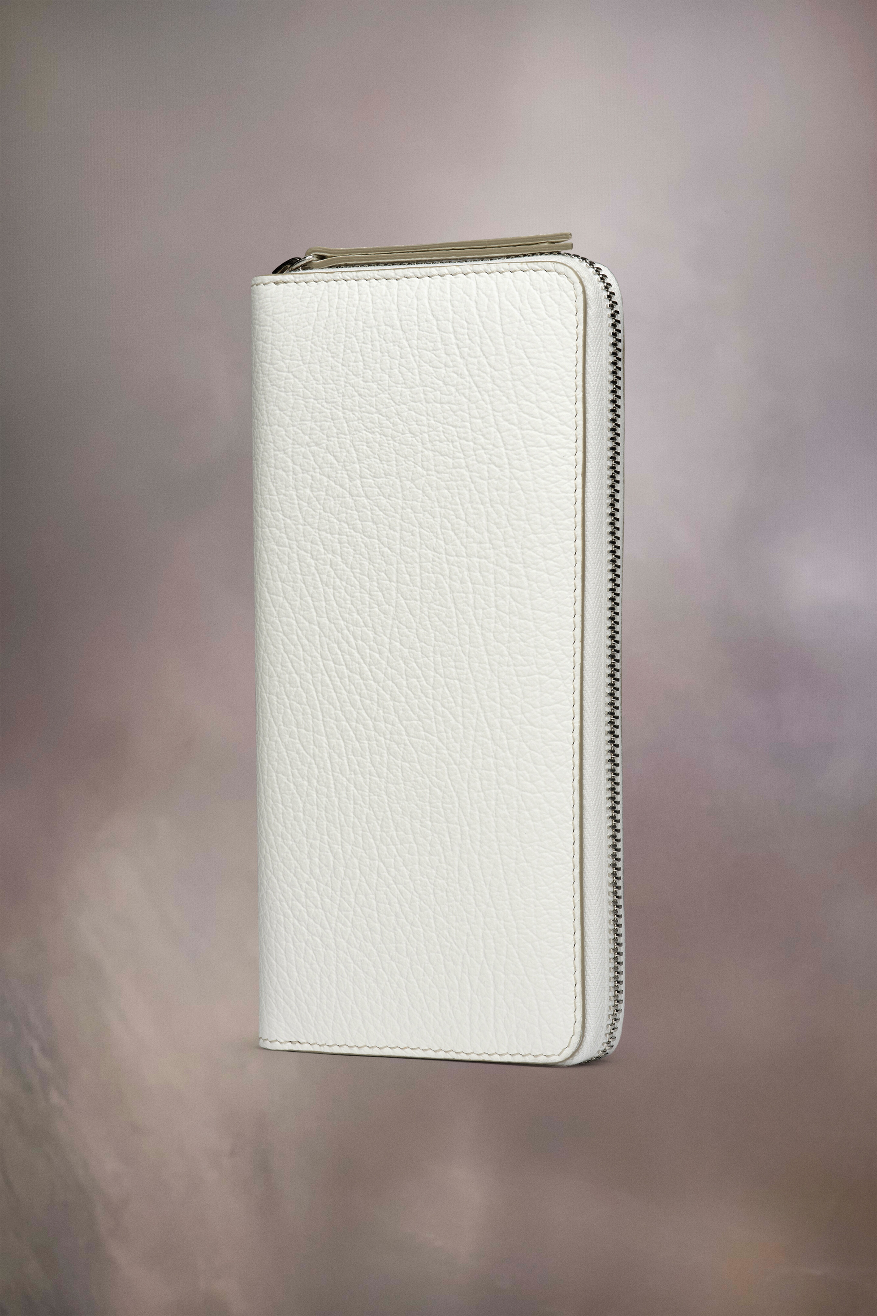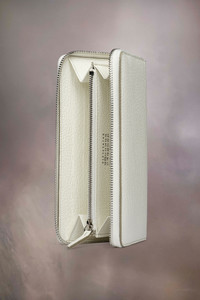 Crafted from embossed grainy leather, the zip-around wallet has an inner zipped coin purse and card holders, with inner numeric logo. Maison Margiela's signature, the four stitches, appear at the back; the opposite of a label.