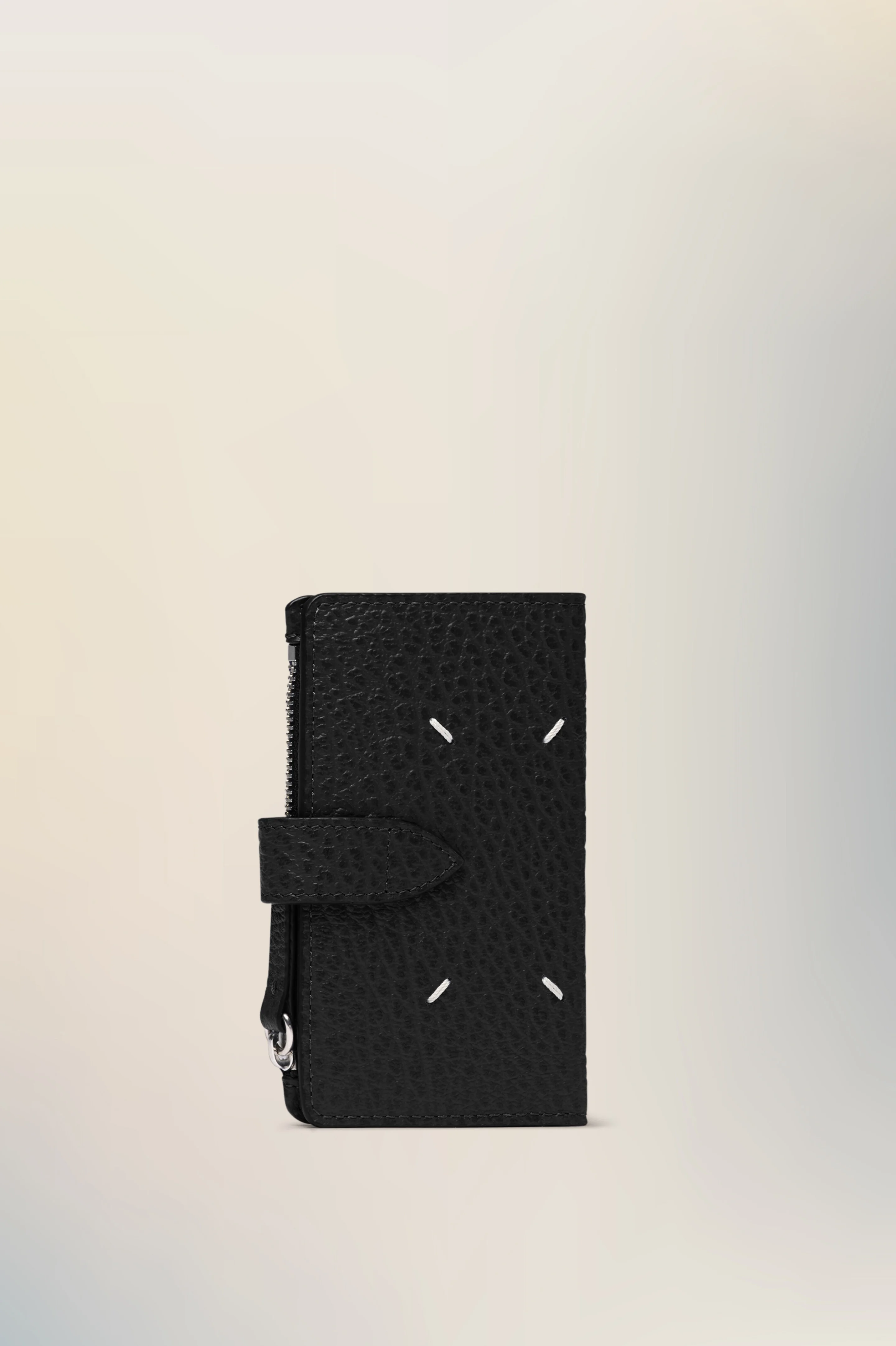 Crafted from embossed grainy leather, the wallet features a clip and zip fastening with card slots and the numeric logo on the inside. Maison Margiela’s signature, the Four stitches, appear on the back; the opposite of a label. Product Details Item ID SA1VX0019P4455T8013 Body: 100% calf leather Inside: 100% calf leather Lining: 100% viscose-rayon Grainy leather card holder Four stitches at the back Snap button and zip closure Inside logo stamping Inside card slots Clean with a specific leather cleaner product and a damp microfiber cloth Made in Italy 13 cm x 7,5 cm/5,1 in x 3 in (Length x Height)