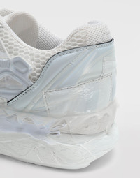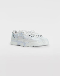 Iconic Fusion sneakers by Maison Margiela showcasing a fusion of fabrics and leather with a chunky rubber sole. They have been given a peeled treatment for a unique look. Item details 100% Bovine leather Logo Laces Fully lined Round toeline Rubber sole Solid color