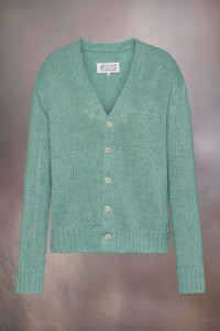 Part of the Gardening Hemp group, the acetate knit cardigan comes in authentic hemp yarn with a summery feel. It features long sleeves, buttons and a V-neck design. The cuffs and wide hem are ribbed for further texture. Maison Margiela's signature, the four stitches, appear at the back; the opposite of a label. Product Details Item ID S51HP0017M13100545 Primary Fabric: 100% True Hemp Hemp cardigan V-neck Button-up placket Long sleeves with ribbed cuffs Ribbed hem Four stitches at the back Model is 178 cm tall and wears a size S.