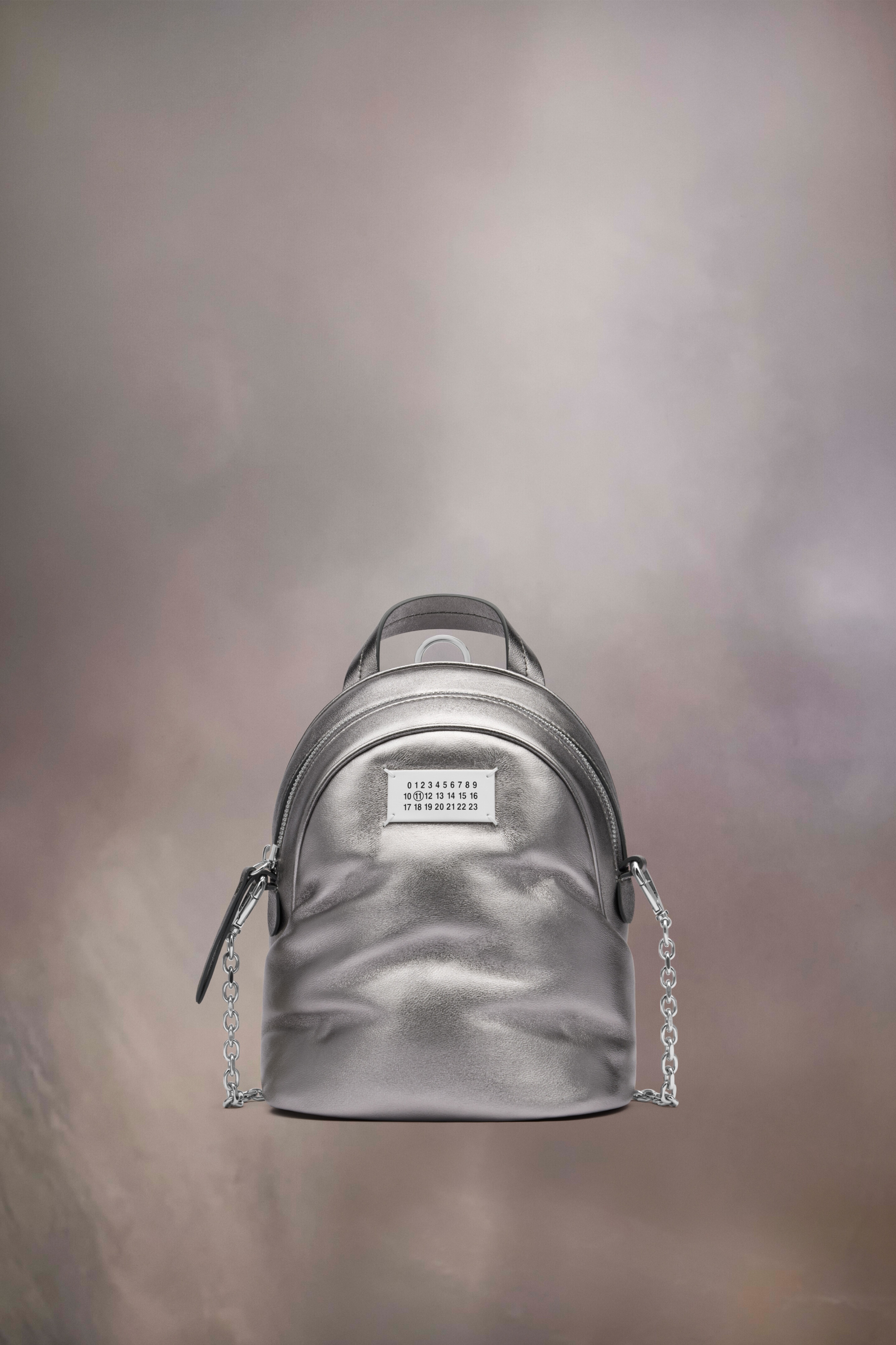 The Glam Slam backpack is crafted from metallic quilted nappa leather. The Glam Slam debuted in the SS18 show and has a quilted design which mimics matelassé – the style of hand-stitched quilts created in Marseilles, France. The concept reflects the Maison’s notion of unconscious glamour and evokes its association to comfort, following the study into dressing and travelling rituals worldwide. The bag features a detachable shoulder strap for multi-wear, magnetic closure and is adorned with the numeric logo label at the front. Product Details Item ID S56WA0014P6748H3809 Body: 100% ovine leather Application: 100% calf leather Lining: 100% polyester Metallic hardware Metallized quilted nappa backpack Detachable chain strap Quilted effect through heat sealing Top handle Logo label on the front Zip closure Flat pocket at the back Internal flat pocket Logo stamp inside Made in Italy 23 cm x 11 cm x 18 cm/9 in x 4,3 x 7 in (Height x Width x Length) Handle drop: 14 cm/5,5 in Shoulder strap drop: 76 cm/30 in A digital certificate provided by the A digital certificate provided by the Aura Blockchain Consortium guarantees the authenticity of this product. Discover more on auraluxuryblockchain.com/#about Blockchain Consortium guarantees the authenticity of this product. Discover more on https://A digital certificate provided by the Aura Blockchain Consortium guarantees the authenticity of this product. Discover more on auraluxuryblockchain.com/#aboutluxuryblockchain.com/#about
