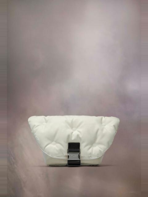 The Glam Slam cycle messenger small is crafted from quilted cordura. The Glam Slam debuted in the SS18 show and has a quilted design which mimics matelassé – the style of hand-stitched quilts created in Marseilles, France. The concept reflects the Maison’s notion of unconscious glamour and evokes its association to comfort, following the study into dressing and travelling rituals worldwide. This style features a cross-body strap, and is adorned with the numeric logo label on the flap. Product Details Item ID SB1WG0040P1511H9677 Body: 100% nylon Application: 100% calf leather Lining: 100% polyester Metallic hardware Cordura cross body bag Adjustable shoulder strap Engraved logo buckle to close Quilted effect through heat sealing Logo label and zip pocket at the back Inside logo stamping Inside zip pocket Made in Italy 22 cm x 14 cm x 34 cm/8,6 in x 5,5 in x 13,3 in (Height x Width x Length) Max. shoulder strap drop: 66 cm/26 in Min. shoulder strap drop: 36 cm/14 in A digital certificate provided by the Aura Blockchain Consortium guarantees the authenticity of this product. Discover more on auraluxuryblockchain.com/#about