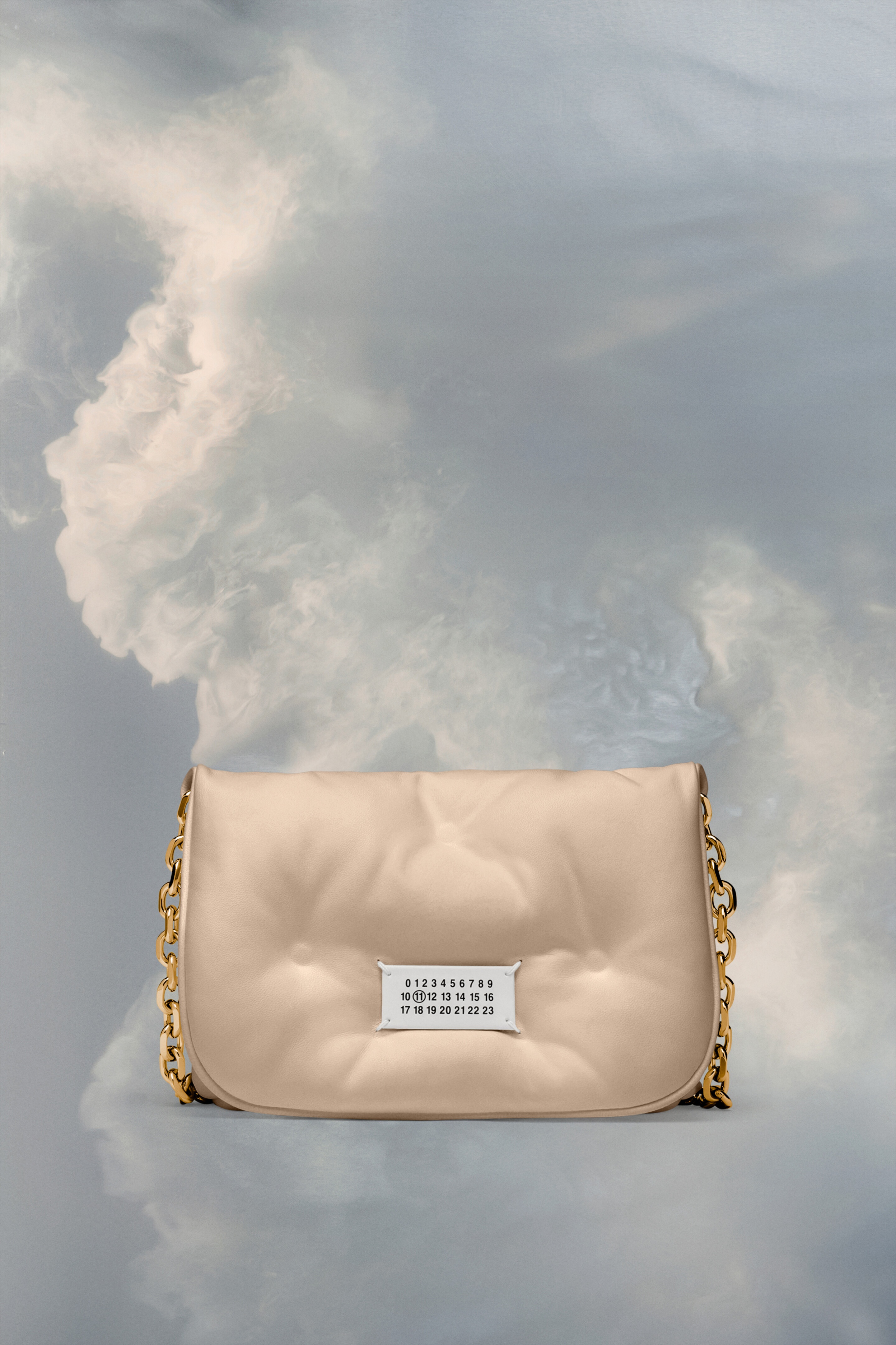 The Glam Slam flap small bag is crafted from quilted nappa leather. The Glam Slam debuted in the SS18 show and has a quilted design which mimics matelassé – the style of hand-stitched quilts created in Marseilles, France. The concept reflects the Maison’s notion of unconscious glamour and evokes its association to comfort, following the study into dressing and travelling rituals worldwide. This style features a shoulder chain and top handle, and is adorned with the numeric logo label at the front. Product Details Item ID SB1WG0019P4300H8631 Outer: Full grain nappa leather with soft and silky touch Lining: Nylon Polished metal hardware Adjustable chain shoulder strap Magnetic closure Quilted effect through heat sealing Logo label at the front Nylon front pocket Inside Four stitches Inside logo stamping Made in Italy 15,5 cm x 9 cm x 21,5 cm/6 in x 3,5 in x 8,5 in (Height x Width x Length) Max. shoulder strap drop: 69 cm/27,1 in Min. shoulder strap drop: 62 cm/24,4 in A digital certificate provided by the Aura Blockchain Consortium guarantees the authenticity of this product. Discover more on auraluxuryblockchain.com/#about