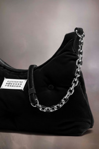 The Glam Slam hobo small is crafted from quilted velvet. The Glam Slam debuted in the SS18 show and has a quilted design which mimics matelassé – the style of hand-stitched quilts created in Marseilles, France. The concept reflects the Maison’s notion of unconscious glamour and evokes its association to comfort, following the study into dressing and travelling rituals worldwide. This style features a chain shoulder strap and is adorned with the numeric logo label at the front. Product Details Item ID SB1WG0057P6426T8013 Body: 65% viscose-rayon, 35% cupro Application: 100% calf leather Lining: 100% polyester Metallic hardware Velvet hobo bag Chain shoulder strap Zip closure Quilted effect through heat sealing Logo label at the front Inside logo stamping Inside nylon zip pocket Made in Italy 21 cm x 6 cm x 28 cm/8 in x 2,5 in x 11 in (Height x Width x Length) Max. shoulder strap drop: 44 cm/17,3 in Min. shoulder strap drop: 29 cm/11,4 in A digital certificate provided by the Aura Blockchain Consortium guarantees the authenticity of this product. Discover more on auraluxuryblockchain.com/#about