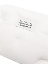 Glam Slam messenger bag Crafted from soft nappa leather, this Maison Margiela bag boasts the tufted quilting that characterises the hallmark Glam Slam line. The pillowy accessory is designed for functionality, boasting a roomy main compartment, and wide grosgrain shoulder strap. Highlights - White - Calf leather - Quilted finish - Padded design - Tonal logo plaque - Silver-tone hardware - Top zip fastening - Adjustable shoulder strap - Main compartment - Internal zip-fastening pocket - Internal logo stamp Made in Italy Composition Outer: Calf Leather 100% SIZE & FIT Model measurements Height 6 ft 2 in(1.87 m) Bust/Chest 37 in(94 cm) Hips 33.9 in(86 cm) Waist 28 in(71 cm) Measurement DEPTH 2 in(5 cm) HEIGHT 5.9 in(15 cm) STRAP 23.6 in(60 cm) WIDTH 9.8 in(25 cm)