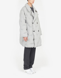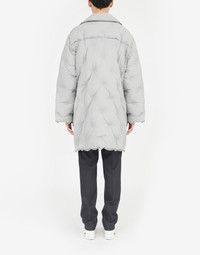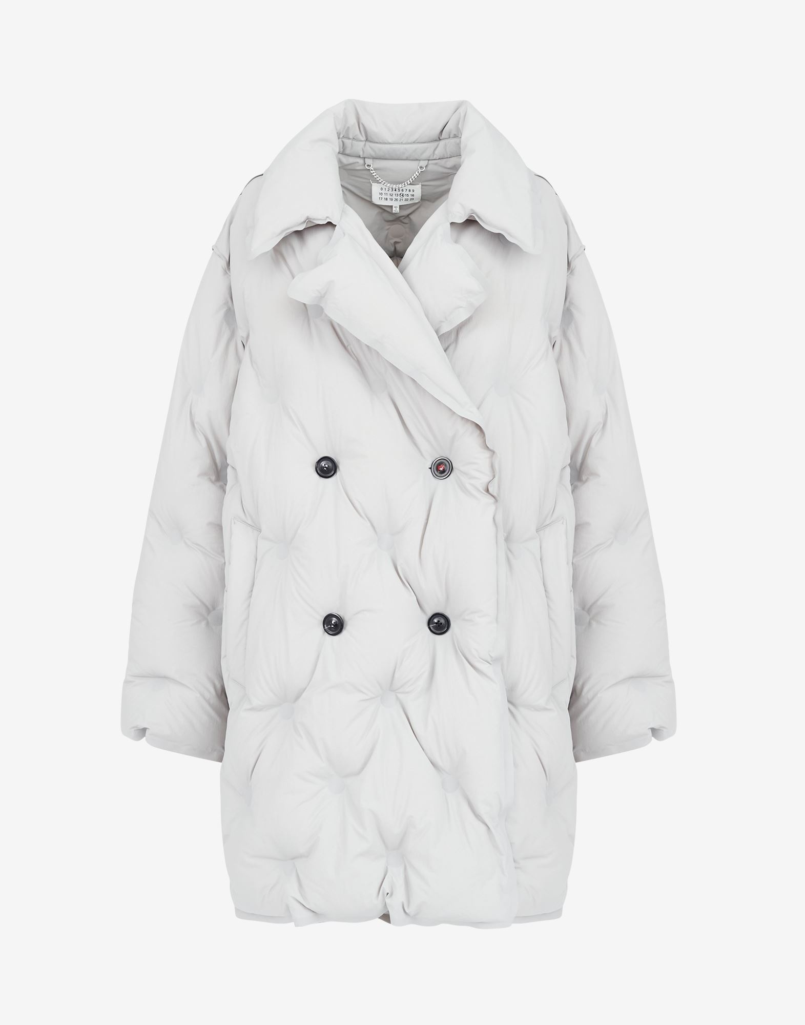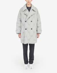 Boxy double-breasted coat in padded recycled nylon with notched collar, yoke detail at the back, side pockets and M embroidered on the button – part of the identity of the ICONS collection. The Glam Slam debuted in the SS18 show and has a quilted design which mimics matelassé – the style of hand-stitched quilts created in Marseilles, France. The concept reflects the Maison’s notion of unconscious glamour and evokes its association to comfort, following the study into dressing and travelling rituals worldwide. Made in Italy. Item details 100% Polyamide Techno fabric Brand logo Solid color Long sleeves Lapel collar Two pockets Button closing Internal padding