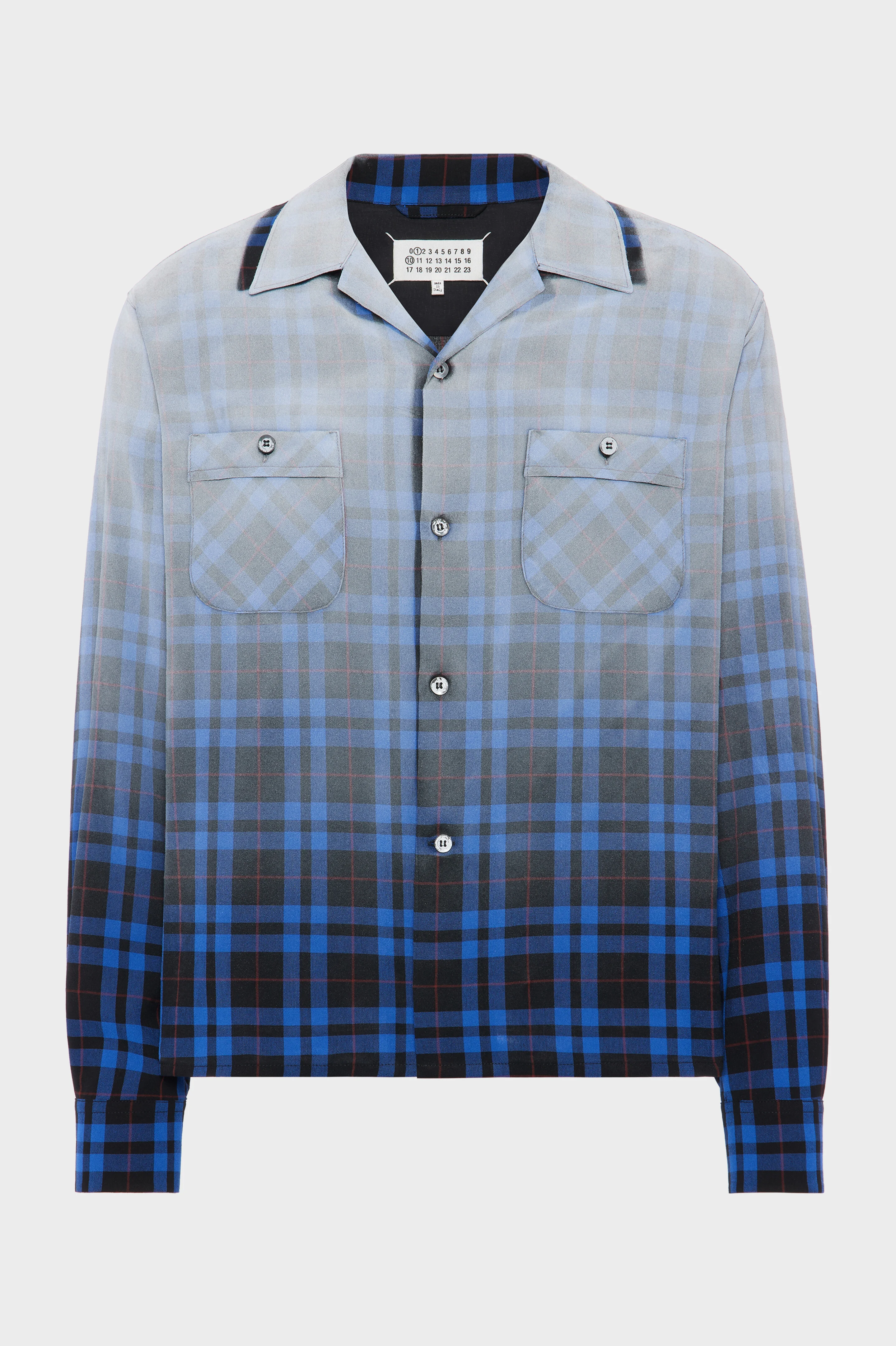 This checked flannel shirt features a fade-out effect achieved through hand airbrushing with pigment spray. The gradient distorts the traditional pattern, while untreated pleats and darts reveal the garment’s structure once opened. It is finished with a pointed collar and button-front silhouette. At the back, the Maison’s signature four stitches appear; the opposite of a label. Product Details Item ID S50DT0069M35706001F Primary fabric: 97% viscose-rayon, 3% cotton Lining: 100% viscose-rayon Viscose tartan Long sleeves Shirt collar Button front closure Four stitches at the back Made in Italy