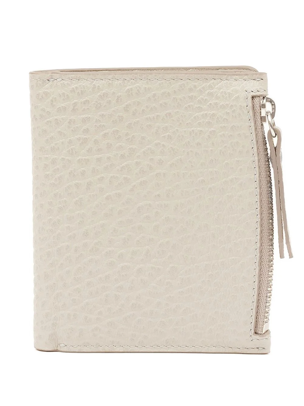 grainy flap leather wallet Highlights - Beige - Embossed logo - Zipped section - Card holder - Four stitches at the back Made in Italy Composition Outer: Calf Leather 100%