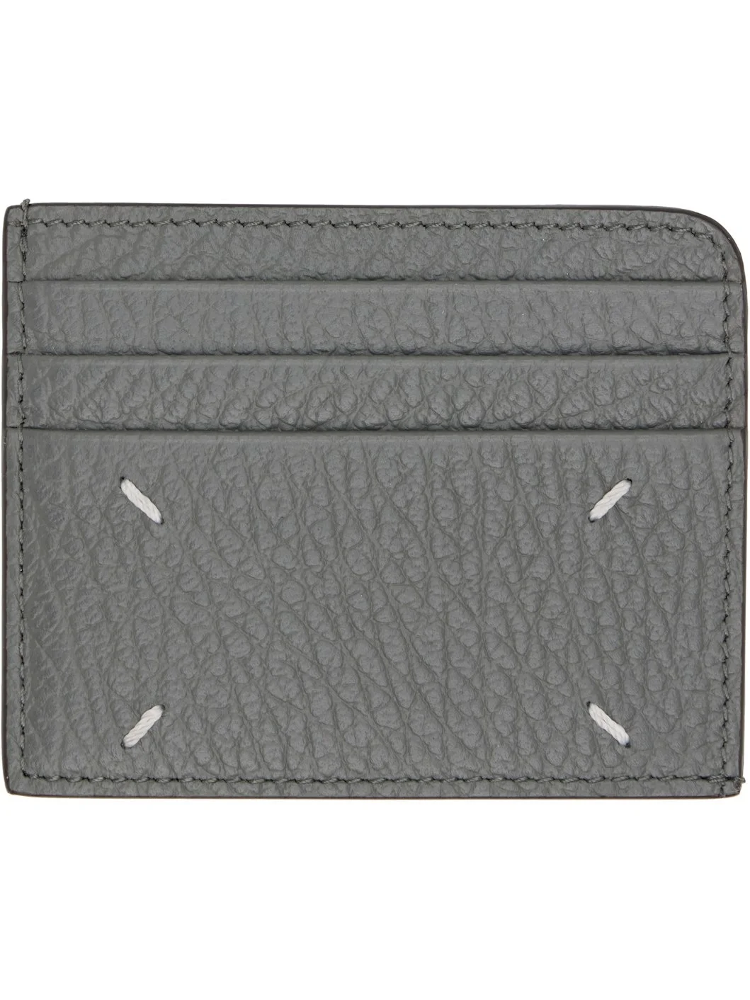 Pebble-grained calfskin card holder. · White stitching at face · Six card slots · Central note slot · Calfskin and canvas lining · H3.25" x W4" Supplier color: Caillou Calfskin. Made in Italy 252168M163002