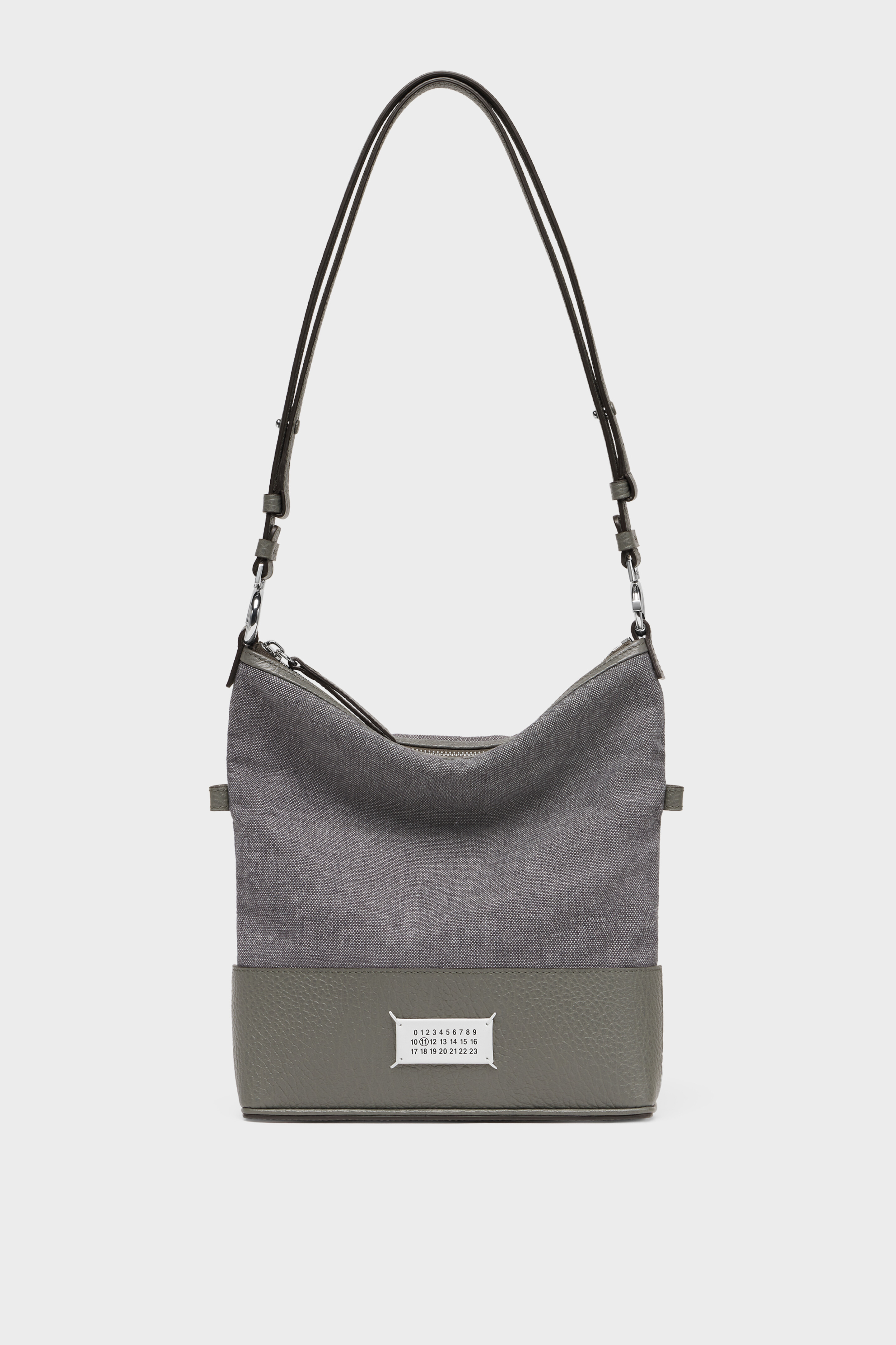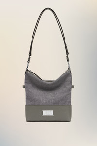 The 5AC hobo small, crafted from grainy leather, is accented with the logo label. The iconic 5AC line takes its name from the French word 'sac' (bag). It explores the Maison's Anonymity of the lining concept. The bag's metal rivets are covered in leather by hand, with the metal visible only where needed, for a clean aspect. Artisanal details include the bag's exposed edges hand-painted in tone with the leather. Product Details Item ID SB1WG0042P4348T8127 Body: 79% Cotton 16% Polyester 5% Other Fibers Contrast: 100% Calf Leather Lining: 100% Cotton Inside: 100% Calf Leather Metallic hardware Shoulder bag in cotton blend canvas with grained leather base Adjustable leather strap Top zip fastening Numeric signature label at the front Internal flat pocket Four stitches at the back Made in Italy