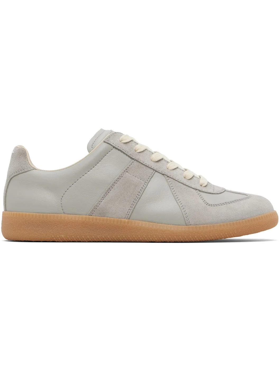 Low-top grained leather and suede sneakers. · Lace-up closure · Logo patch at tongue · Padded tongue and collar · White stitch at heel tab · Buffed leather and canvas lining · Treaded rubber sole Supplier color: Griffin Gray Upper: leather, textile. Sole: rubber. Made in Italy 261168M237050