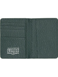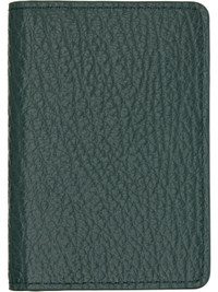 Grained calfskin bifold card holder. · White stitching at back face · Five card slots and two patch pockets at interior · H4.5" x W3" x D0.25" Supplier color: Green Calfskin. Made in Italy 261168M163012