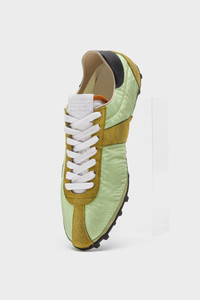 Crafted from nylon, suede and calfskin – with a vintage treatment – the Sprinters silhouette is inspired by retro running shoes. Block colour contrast is met with the classic tongue displaying the numeric logo. The cleated sole also features number detailing with the 22 encircled indicating the Maison's footwear collection. Maison Margiela's signature stitch appears at the back. Product Details Item ID S57WS0512P8225HA841 Upper: 100% Polyester Contrast: 100% Calf Leather Contrast: 100% Calf Leather Lining: 100% Polyester Contrast: 100% Calf Leather Contrast: 100% Polyamide-Nylon Inside: 100% Calf Leather Sole: 100% Rubber Low-top sneakers in nylon and suede with vintage treatment Stripe down the center of the toe area Cleated rubber sole with numerical logo details Logo label on the tab White stitching at the back Clean with a gentle cleanser Made in Italy
