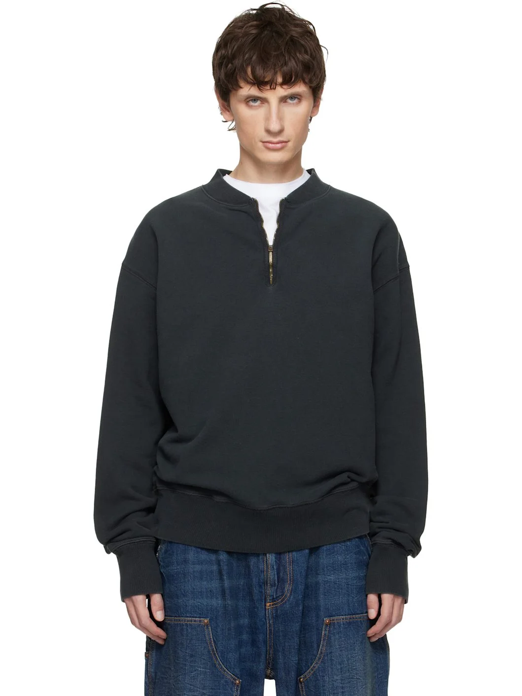 French terry sweatshirt. · Rib-knit crewneck, hem, and cuffs · Half-zip closure · Dropped shoulders · White stitching at back collar Supplier color: Vintage carbon 100% cotton. Made in Italy 252168M202011
