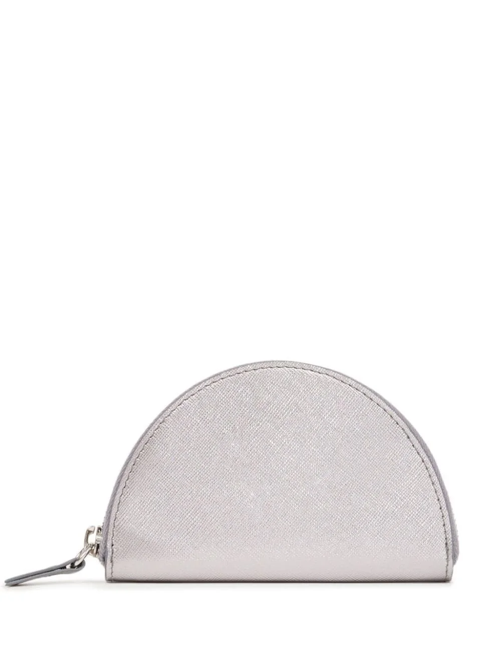 Halfmoon leather wallet Highlights - Silver-tone - Calf leather - Metallic finish - Signature four-stitch logo - All-around zip fastening - Main compartment - Internal logo stamp - Coin pocket Made in Italy Composition Outer: Calf Leather 100%