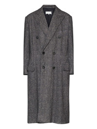 herringbone double-breasted coat Highlights - Dark grey - Herringbone pattern - Double-breasted fastening - Peak lapels - Long sleeves - Straight hem Made in Italy Composition Wool 100% Washing instructions Read Manufacturer Guidelines