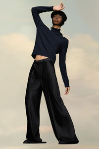 This high-neck sweater is crafted from jersey with long sleeves, ribbed trims and exposed seams. At the back, four white stitches show the hand of the Maison: the opposite of a label. Gauge 7 and 12. The model is 188cm tall. Model wears size S.