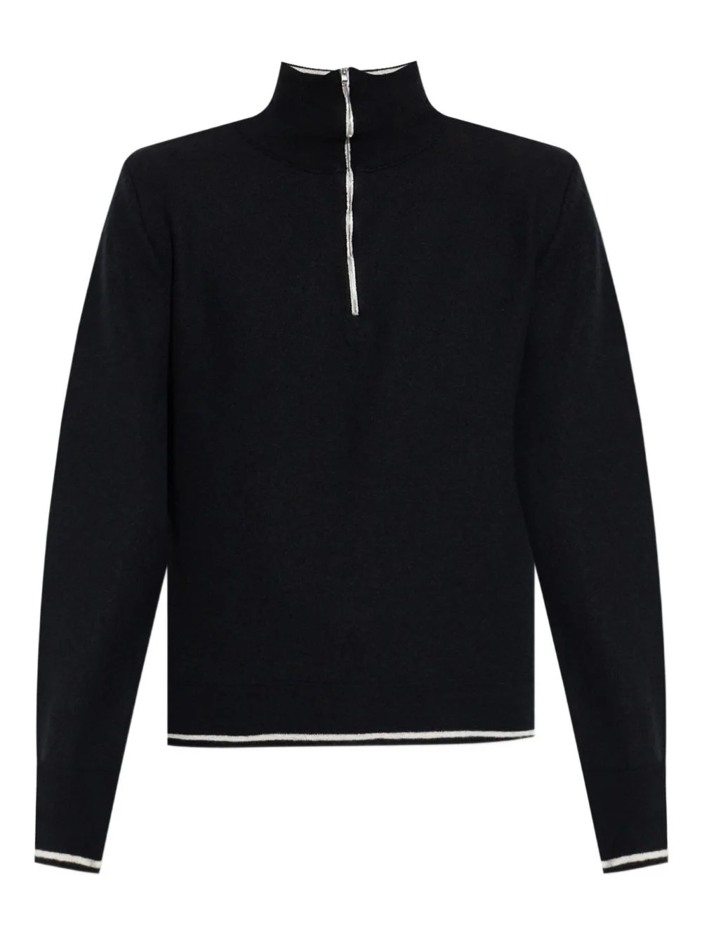 high-neck front-zip sweater Highlights - Black - High neck - Short front zip fastening - Long sleeves - Ribbed hem - Ribbed cuffs Imported Composition Wool 100% Washing instructions Read Manufacturer Guidelines