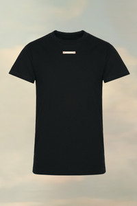 Short-sleeve white T-shirt crafted in cotton. The regular-fit style has a round neckline and features a school-inspired name tag on the front with visible stitching, a nod to the Maison's signature. The four-stitches moniker adorns the back.