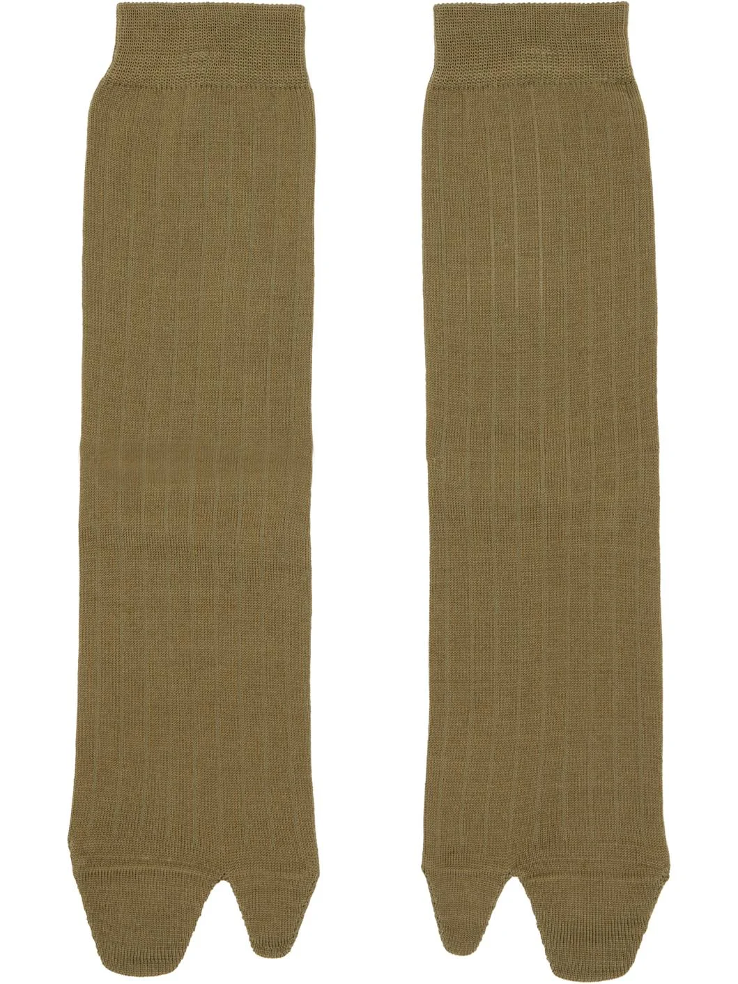 Pair of rib-knit cotton-blend jersey socks. · Calf-high · White stitching at collar · Cleft toe Supplier color: Khaki 76% cotton, 24% nylon. Made in Italy 261168M220001