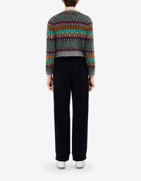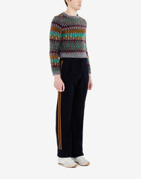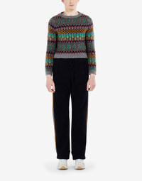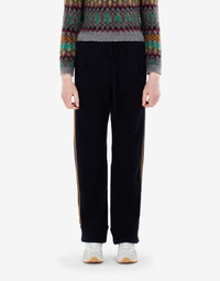 Relaxed-fit knit joggers with a drawstring waist. They feature ribbed details at the waist, side pocket trim, hems and back patch pocket. Stripes appear down the side and the back is adorned with the Maison's four-stitches moniker. Gauge 7. Item details 100% Wool Side seam stripes Lightweight knit Solid colour with appliqués Drawstring closure Two front pockets