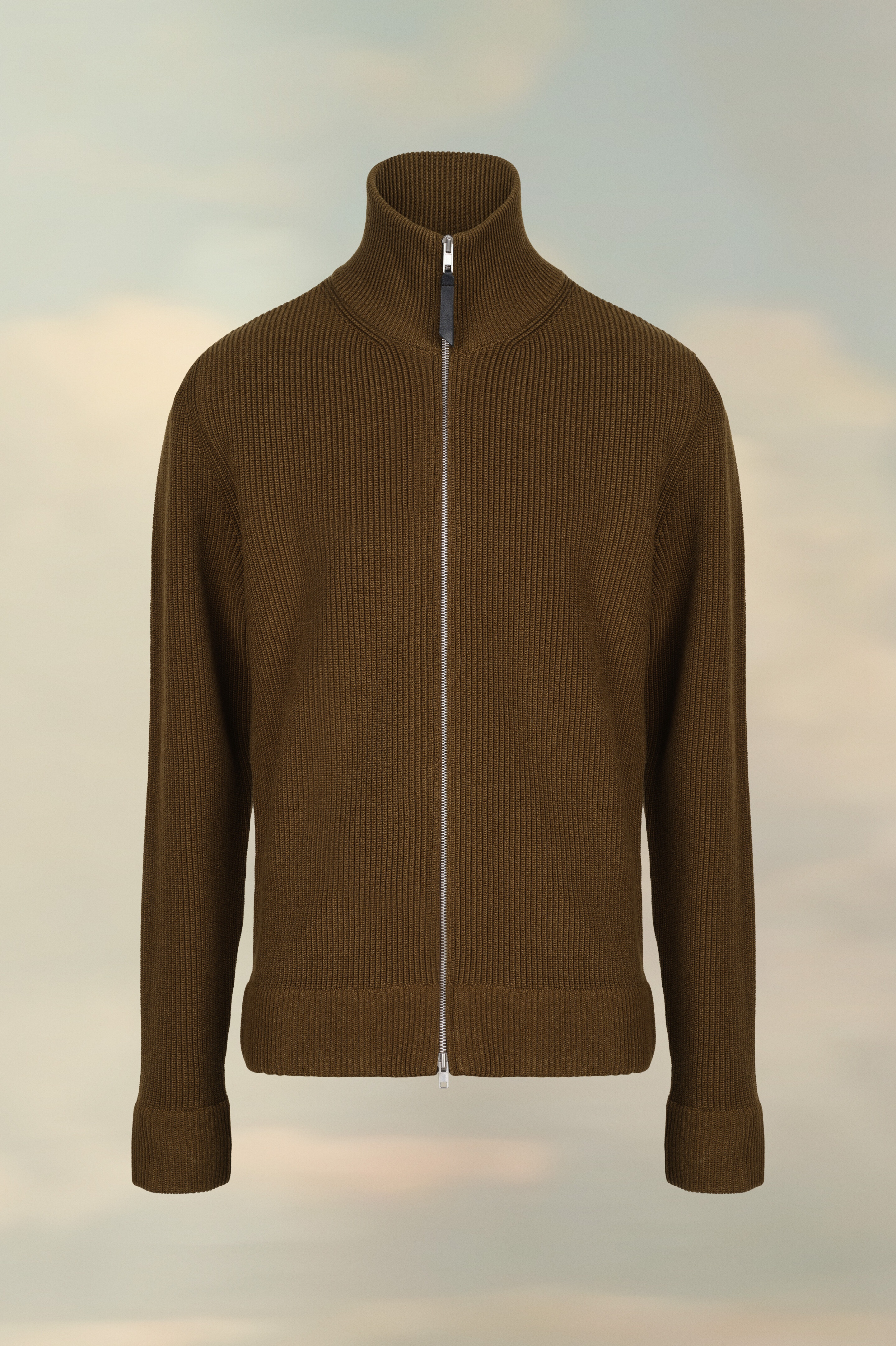 The jersey knit cardigan has long sleeves and zip-up design. It comes in a ribbed finish. Gauge 7. Product Details Item ID SI1HA0013S17781728F Composition: 60% Cotton, 40% Wool Application: 100% Leather Full length zip knitwear Leather finished zip slider Ribbed trims Gauge 7 Made in Italy The model is 6'2" tall and wears size S.