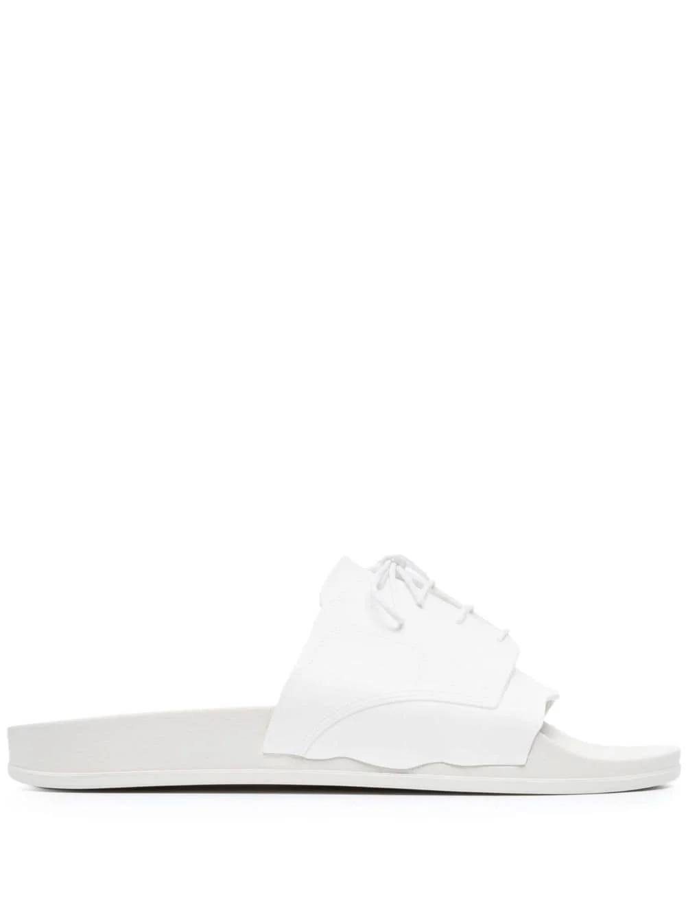 lace-up pool slides Highlights - White - Slip-on style - Lace-up detailing - Flat rubber sole - Open toe Made in Italy Composition Outer: Rubber 100% Lining: Rubber 100%, Fabric 100% Sole: Rubber 100% SIZE & FIT Measurement HEEL 0.78 in(2 cm) Sole height 0.39 in(1 cm)